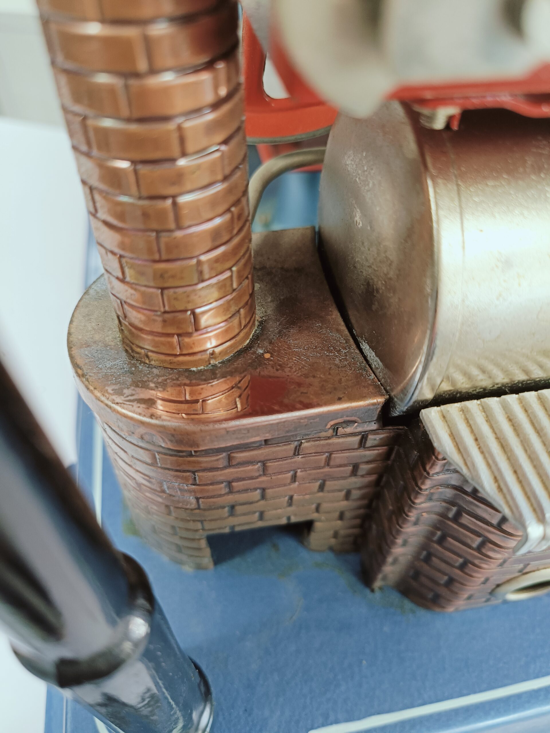 Bei Messingkessel kann sich die sehr dünne Kupfer Beschichtung lösen.
